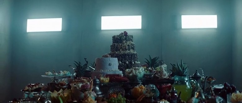 Bir mahkum, beton bir hücredeki yatağında uyanır. Başka bir mahkum, hücrenin karşısındaki yatağa oturur. Dikey biçimde tasarlanmış, her iki mahkumun karşılıklı yer aldığı ve ortalarında kare şeklinde bir boşluğun olduğu, yemek için kullanılan bir platform. İkaz amaçlı iki ışık duvara yansır; önce kırmızı ışık yanar, sesli ikaz duyulduğunda kırmızı ışık söner ve yeşil ışık yanar. Bu büyük ziyafetin kalıntıları için uyarı niteliğindedir; çöp yeme vakti.